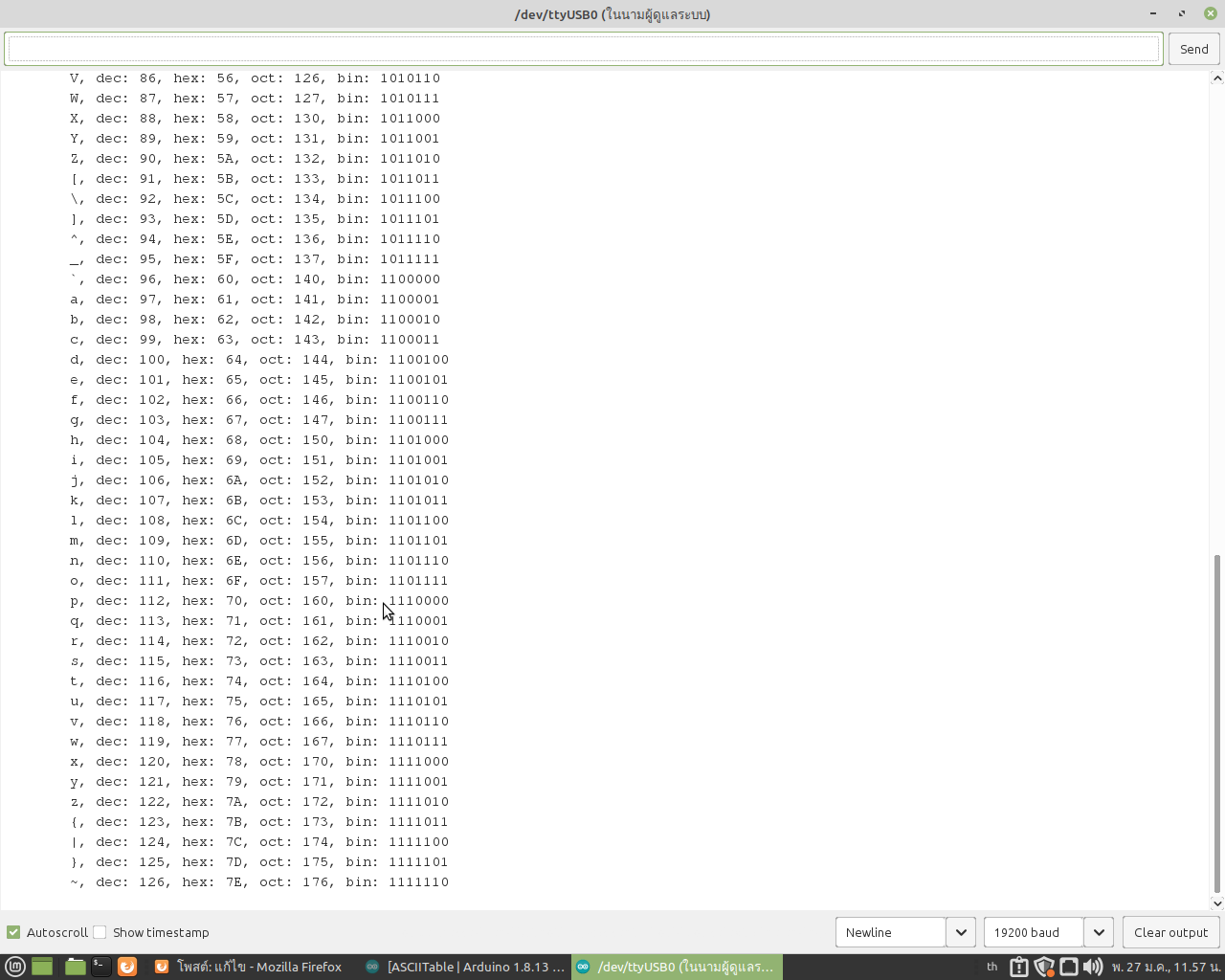 ใช้ความเร็วที่ 19200 baud ส่งข้อมูลออกมาได้เสถียร ในบอร์ด Arduino Nano